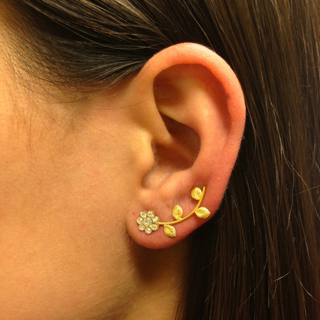 Brass Flower Ear Cuffs & Climber Earrings in Gold
