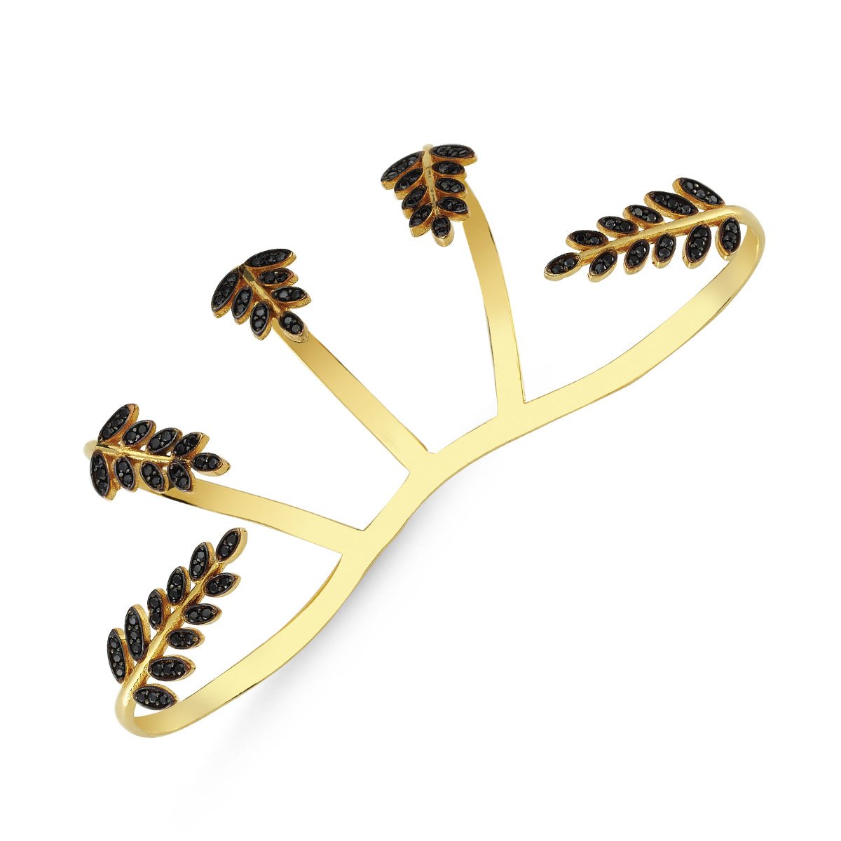 Black Silver Leaves Hand Palm Cuff bracelet in Gold