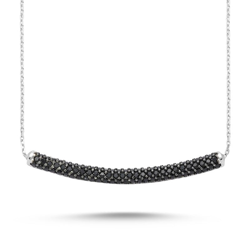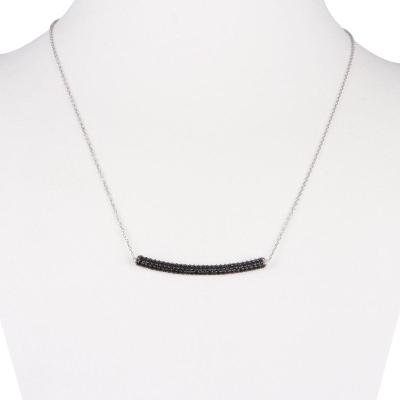 Black Tube Dainty Silver Necklace With Pendant