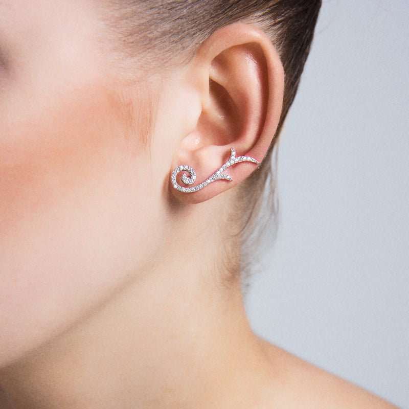 Dainty Silver Branch Ear Cuffs & Climber Earrings