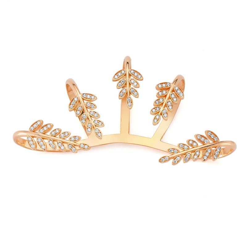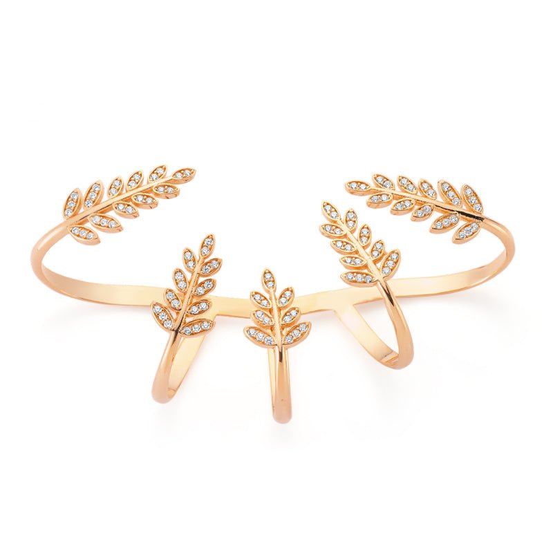 Silver Leaves Hand Palm Cuff bracelet in Rose Gold