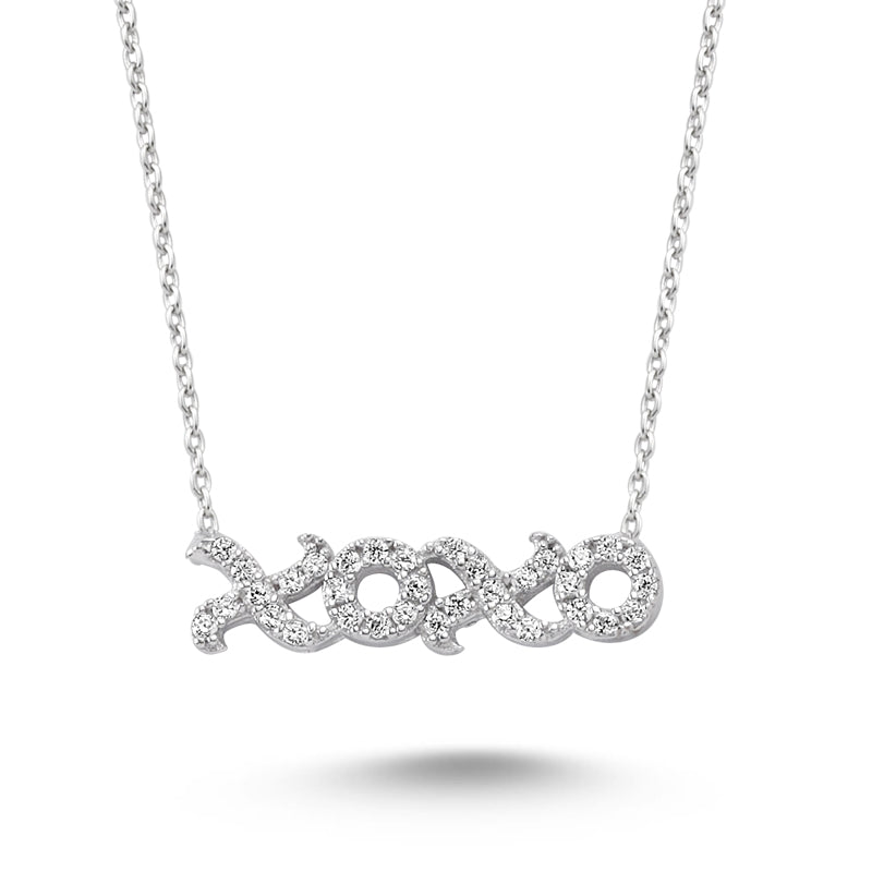 • Mwah and come in for a hug. The XoXo silver necklace isa great way to share your love or gift yourself a fun and chic necklace to wear out. The brilliant CZ crystals will shine your love all season. This necklace is also available in rose gold.